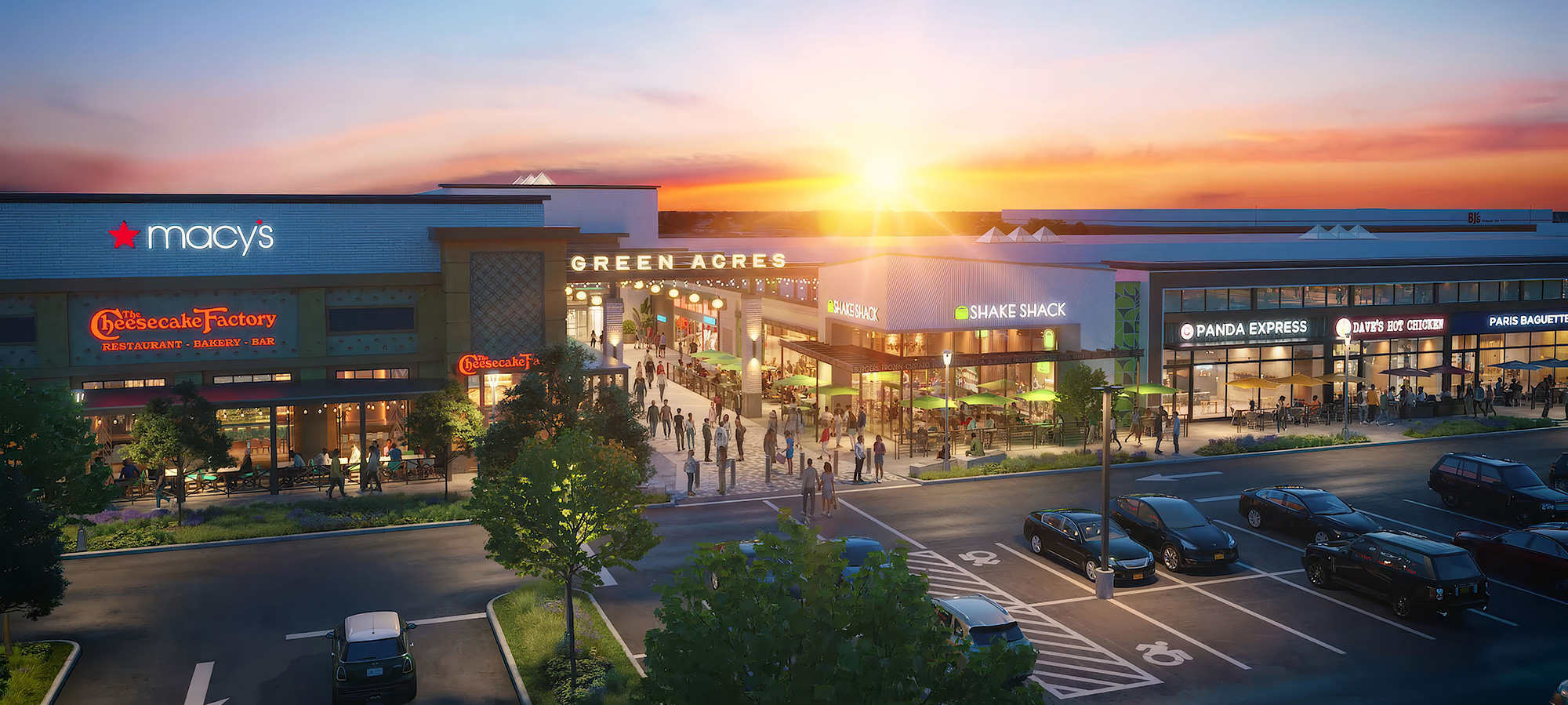 Located in Valley Stream, NY - Green Acres Mall is a shopping center featuring a large variety of stores including H&M, Uniqlo, Primark, Macy's, Hollister, Old Navy, Foot Locker, Victoria's Secret, Pandora, Home Goods and Dick’s Sporting Goods, and restaurants like BJ'S Restaurant Brewhouse, Olive Garden, Red Lobster, Buffalo Wild Wings, Applebee's, T.G.I. Fridays, Chipotle, Panera Bread, and Chuck E Cheese.