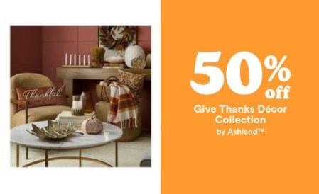 Limited time only! Shop in store and get 50% off on give thanks décor collection by Ashland.