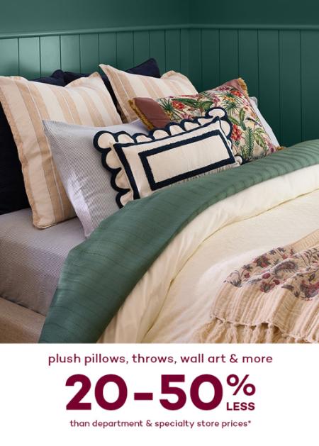 20-50% Less Plush Pillows, Throws, Wall Art & More