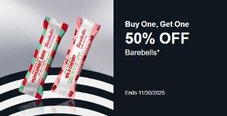 Shop in store and buy one, get one 50% off Barebells for a limited time.