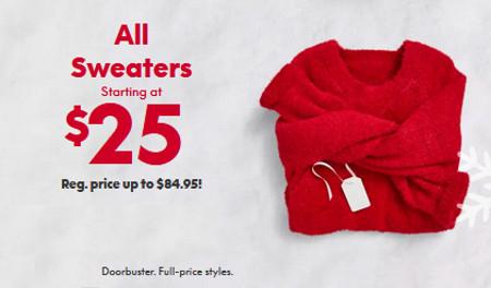 Better hurry! Shop in store and get all sweaters starting at $25.