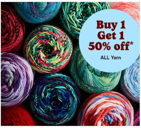 Don't miss our Big Gift Sale! Shop in store and enjoy buy 1 get 1 59% off on all yarn.