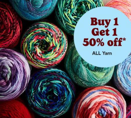 Limited time only! Shop in store and get buy 1, get 1 50% off on all yarn.