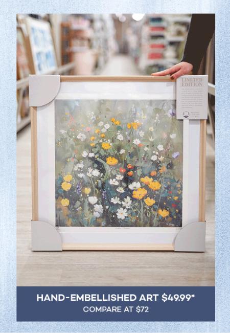 Don't miss out! Shop in store and get $49.99 on hand-embellished art.