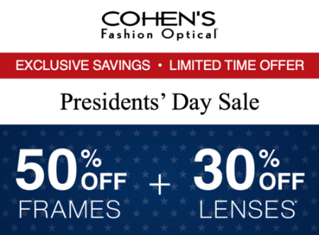 *Valid on purchase of frames + lenses. Certain brands excluded. See store for details. Not valid with any other offers, discounts or vision plans/insurances. Limited time offer.