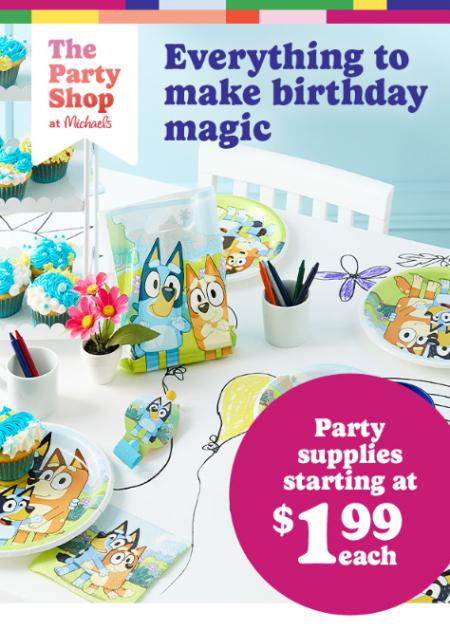 Limited time only! Shop in store and get party supplies starting at $1.99 each.